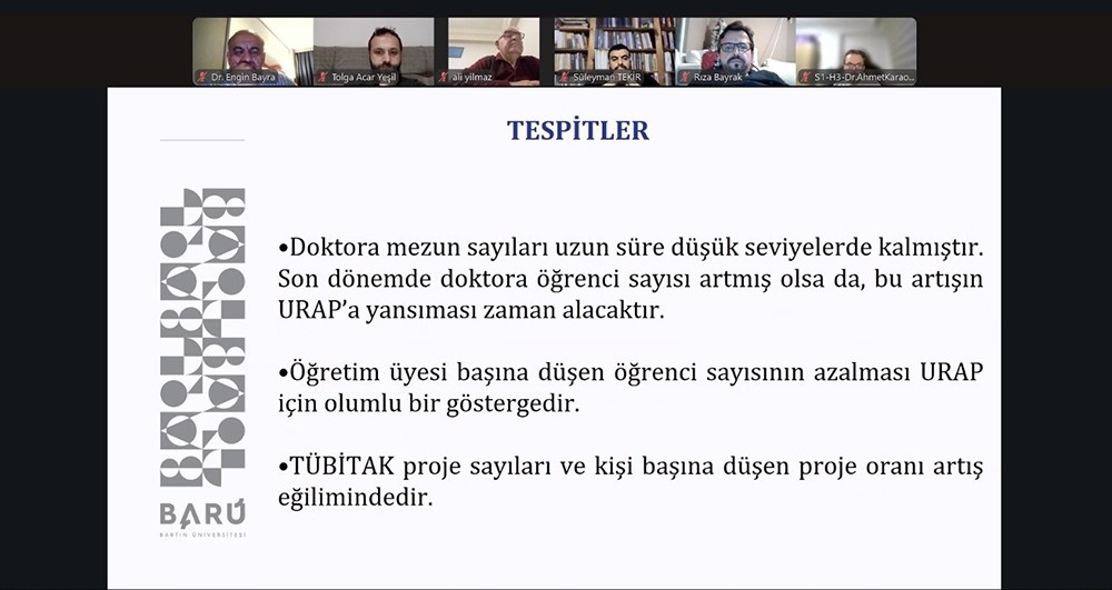 Toplantı sonunda katılımcılar, URAP kapsamında üniversitelerin görünürlüğünü ve akademik performansını artırmaya yönelik iş birliklerinin önemine vurgu yaparak, karşılıklı etkileşim ve bilgi paylaşımına dayalı toplantıların sürdürüleceğini ifade ettiler. Bartın Üniversitesi adına toplantıya katkı sunan Öğr. Gör. Burak Beygirci’ye teşekkür edildi.